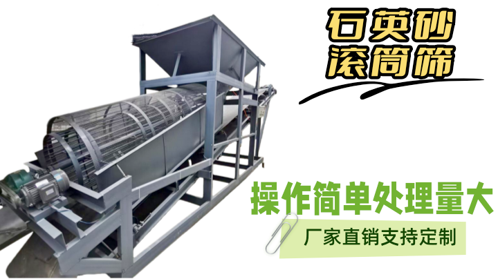 滾筒篩體:由圓筒形篩網或穿孔鋼板組成,篩孔尺寸根據石英砂粒徑要求定制。