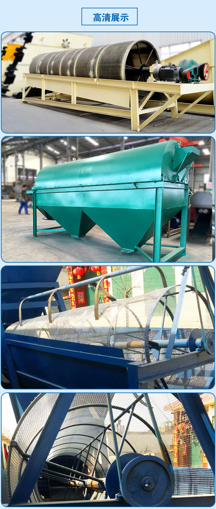 滾筒篩分機又叫滾筒篩分機,是選礦上常用的一種分選設備,也是分選河沙時的一種篩分設備。滾筒篩分機采用滾筒篩分原理,物料通過不停的翻滾來實現不同等級粒度的篩選,終從各自的出料口排出,因此滾筒篩分機堵網機率低,工作效率高,是人工篩分效率的10 倍以上。