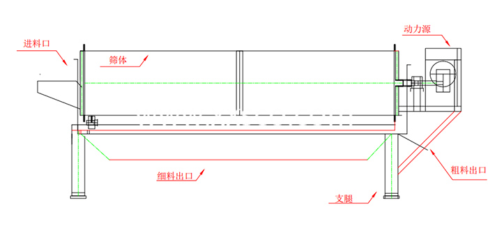 滾筒篩分機主要是由六角形滾筒、機架、漏斗、減速器、電動機五個部分成,破碎的石料進入滾筒后,一方面隨著滾筒轉動而被篩選,靠滾筒旋轉的離心力及跳汰作用來篩分物料。一方面粒度大的石料沿著滾筒的斜度向前流動,通過不同網目的的篩網逐漸被篩出。不大的石料篩出后落入各自的漏斗,然后由人工運出或自流送往成品堆。